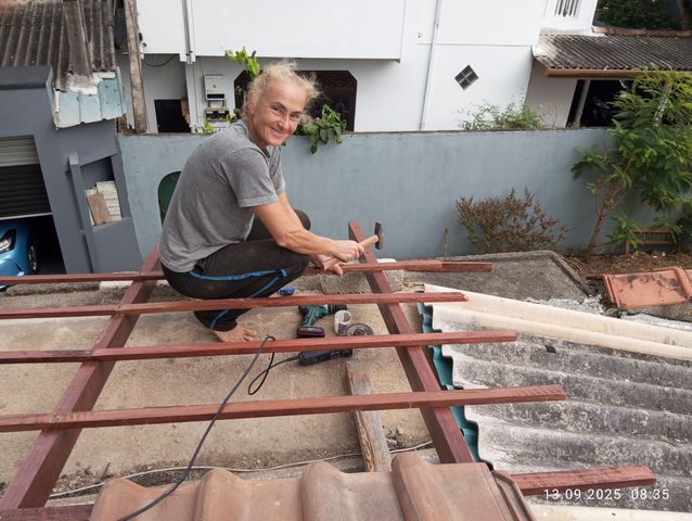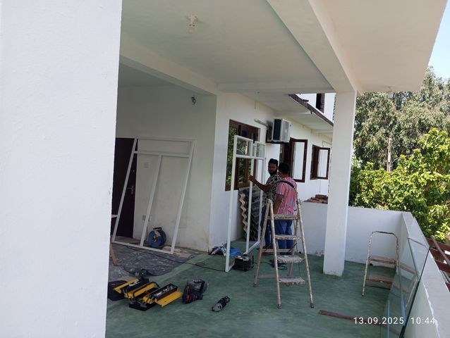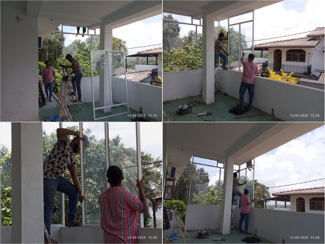 Jacky passt das Glas fuer die Oberlichter an, da der Glaser ungenau arbeitete.Video 06 |