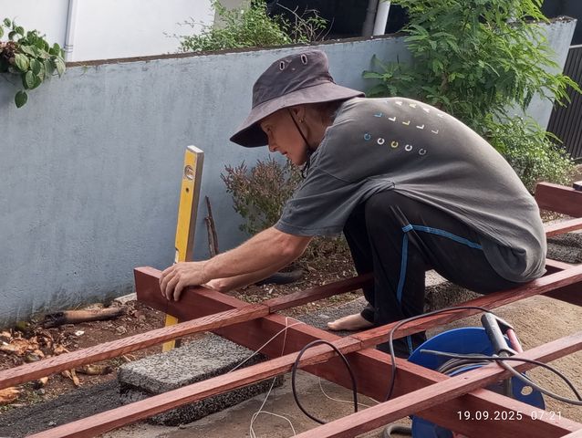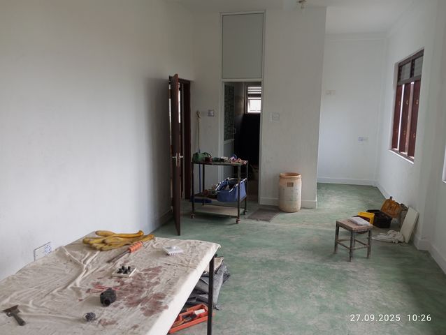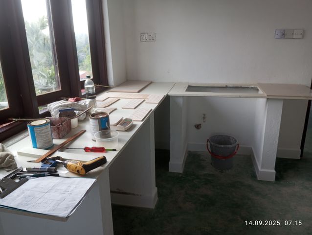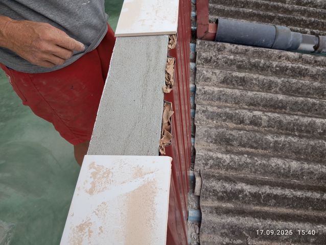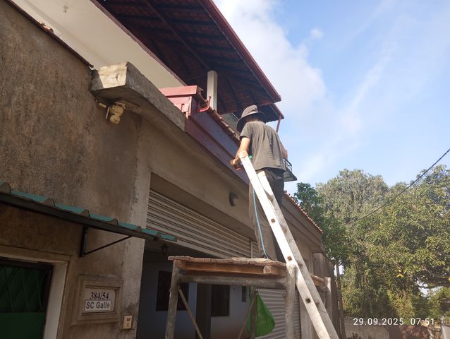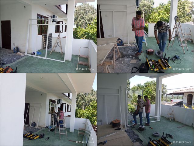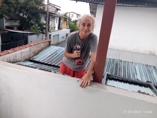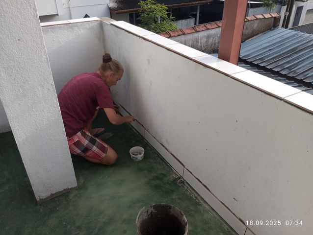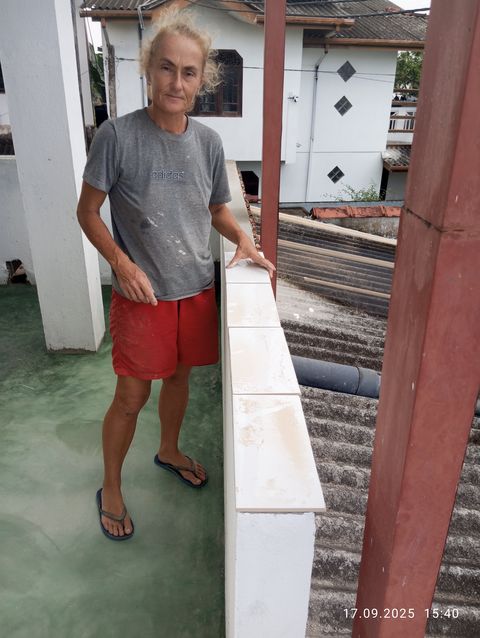 Jayasiri faengt an von aussen zu verputzen.