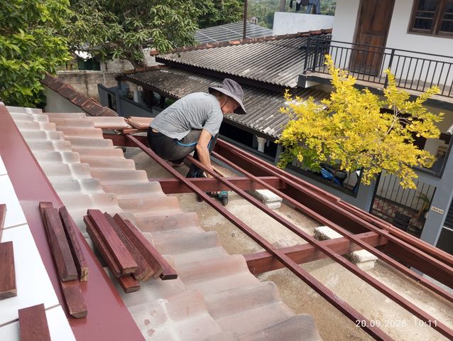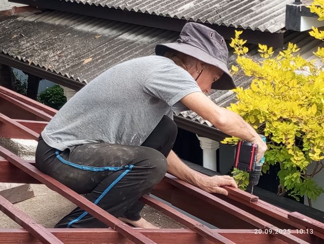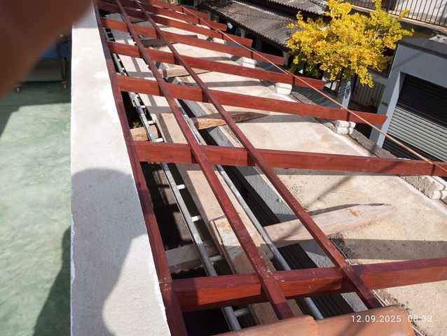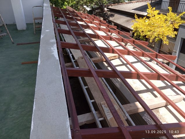 Balken fuer die Lattung des Dachkonstrukts. |