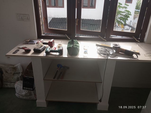 Podest fuer die Waschmaschine. Diese muss wegen des Abflusses hoch gestellt werden. |