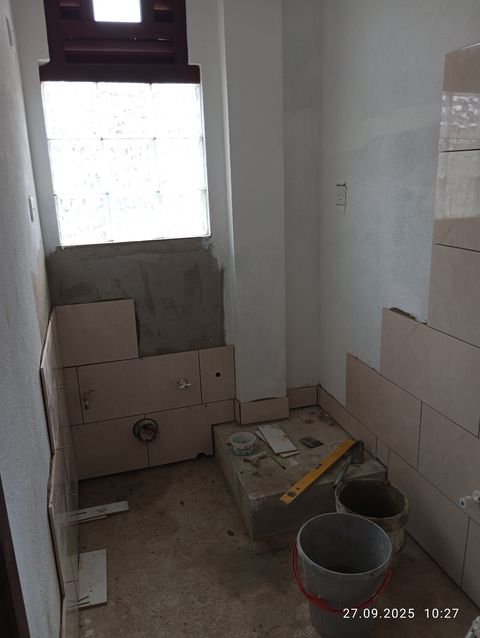 Wichtig war zuerst die Mauern fuer die Dusche, damit alles weitere berechnet werden kann. |