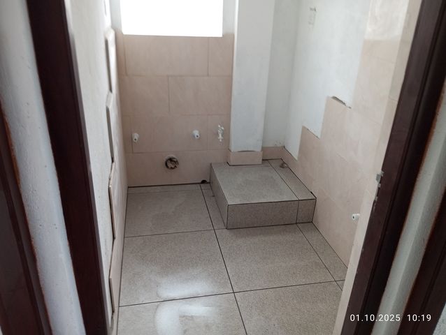 Links der Standort fuer die Toilette. Rechts, das Podest fuer die Waschmaschine. |