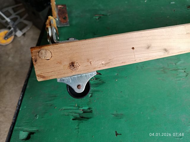 Ein neues Brett zugesaegt und mit neuen Schrauben montiert. |