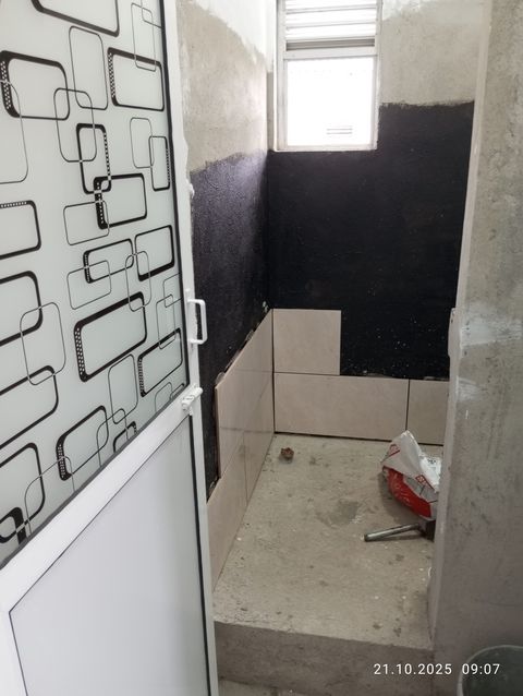 Wichtig war zuerst die Mauern fuer die Dusche, damit alles weitere berechnet werden kann. |